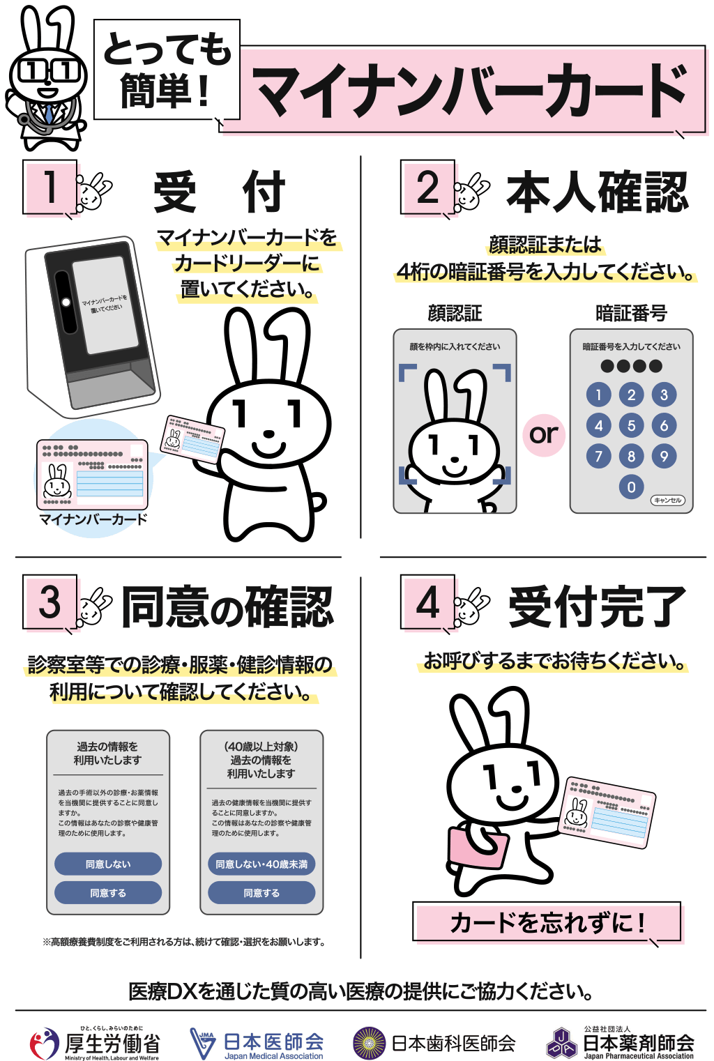 マイナンバーカードの健康保険証利用の使用について、お声掛け・ポスター掲示行っています。