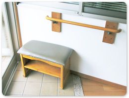 履物脱ぎ場+手すり どなたでもご利用しやすい医院づくりを目指して、各所でバリアフリー化を進めています。