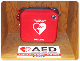 AED(自動体外式除細動器) 突然の心停止を起こして倒れた人の命を救うことができる治療機器です。